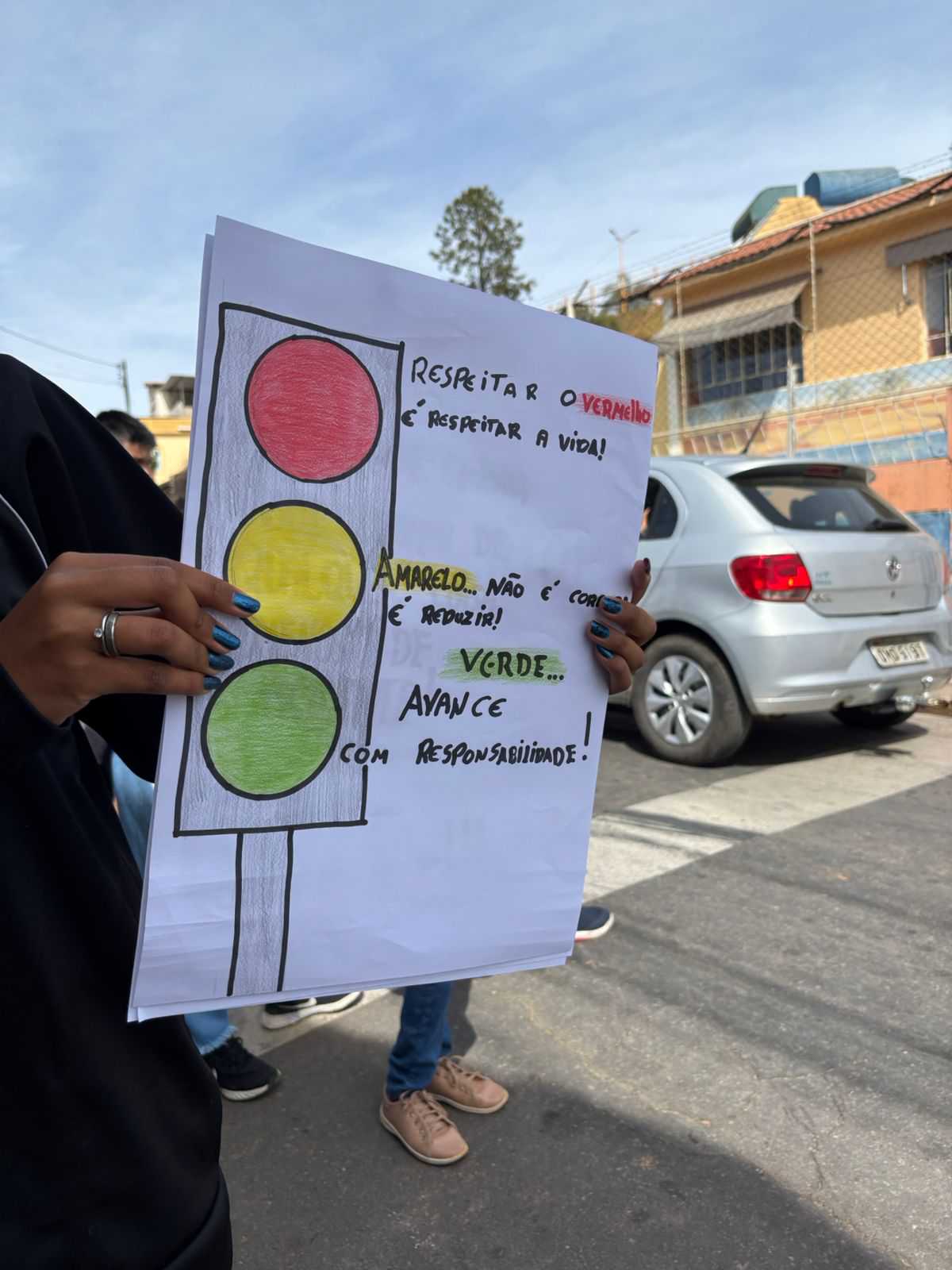Bilhete informativo às famílias As famílias receberam um bilhete explicando o projeto e orientando a importância de reforçar comportamentos seguros no trânsito, convidando-as a participar do processo educativo.