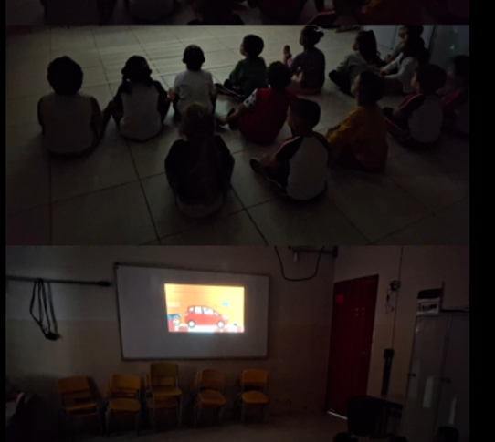 Vídeos educativos Foram exibidos vídeos temáticos na TV da sala, abordando: Sinais de trânsito, Comportamentos adequados, Papel das crianças e adultos na segurança. Após os vídeos, as professoras conduziram rodas de conversa para reforçar a compreensão.