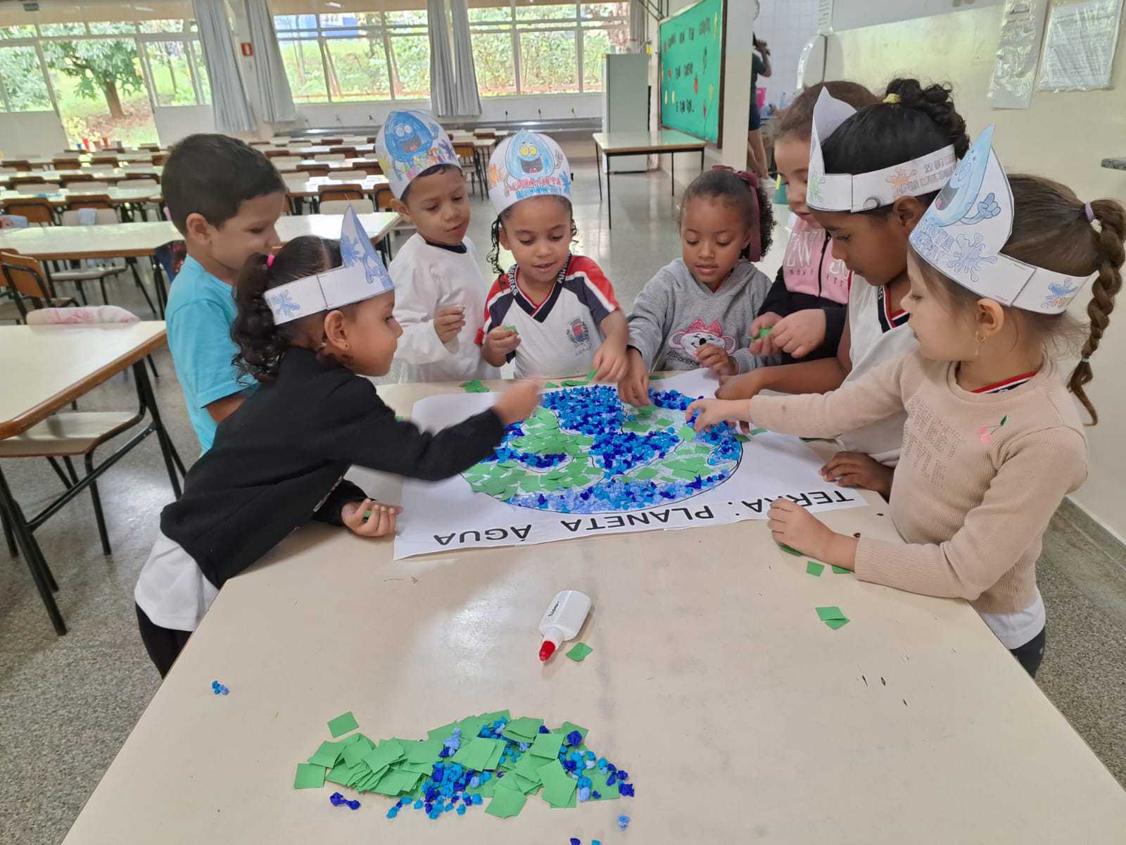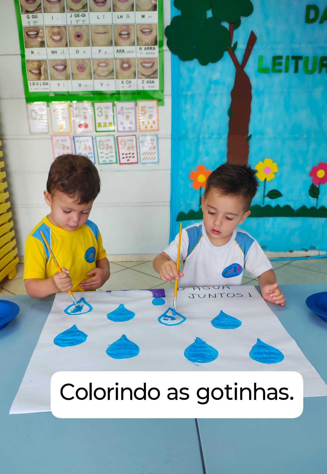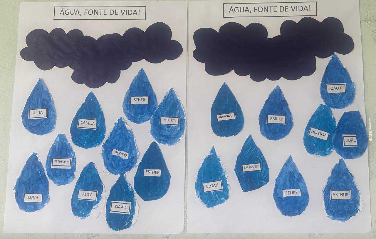 Desenvolvimento: Primeiramente foi realizado uma roda de conversa referente a importância da água na nossa vida e do planeta. Após a roda de conversa a professora junto com as crianças confeccionou um cartaz onde tinha desenhado uma torneira com gotinhas …