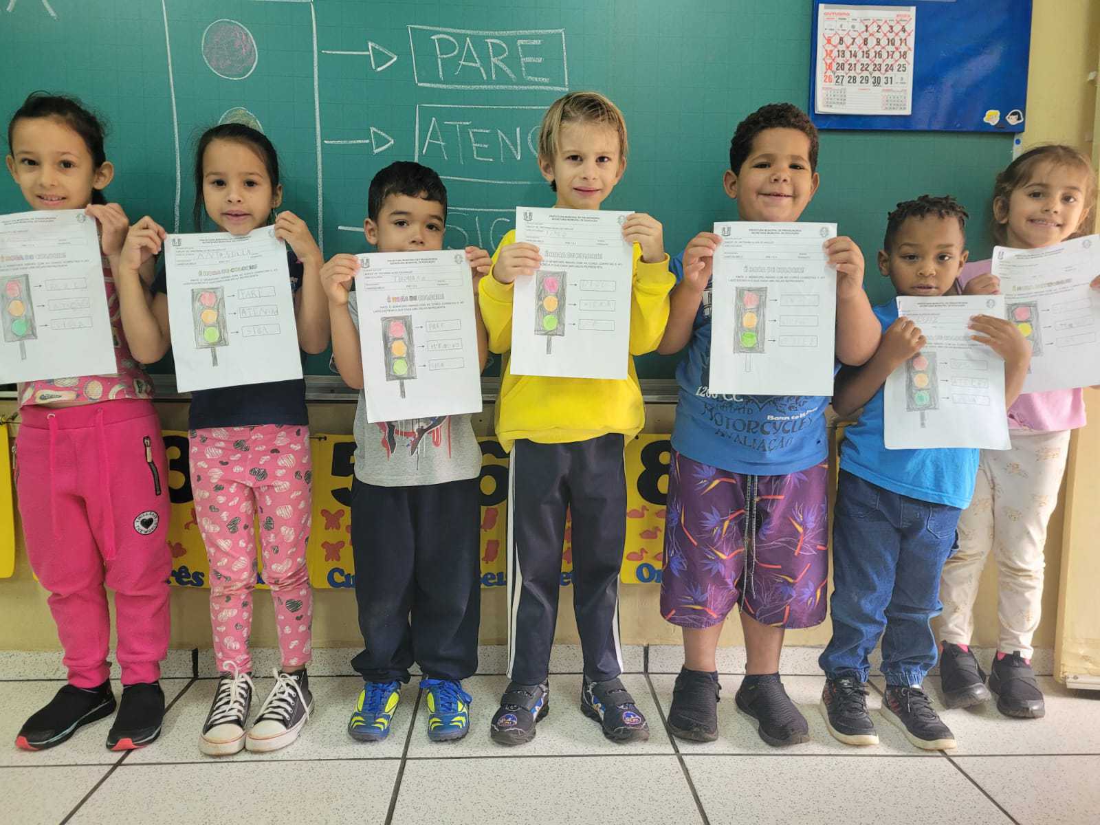 Os alunos da pré escola registraram seus conhecimentos sobre trânsito e sobre as cores e o significado do semáforo. Foram relembrados conceitos aprendidos em aulas anteriores e logo após explorados as cores e feito registro em atividade de folha de …
