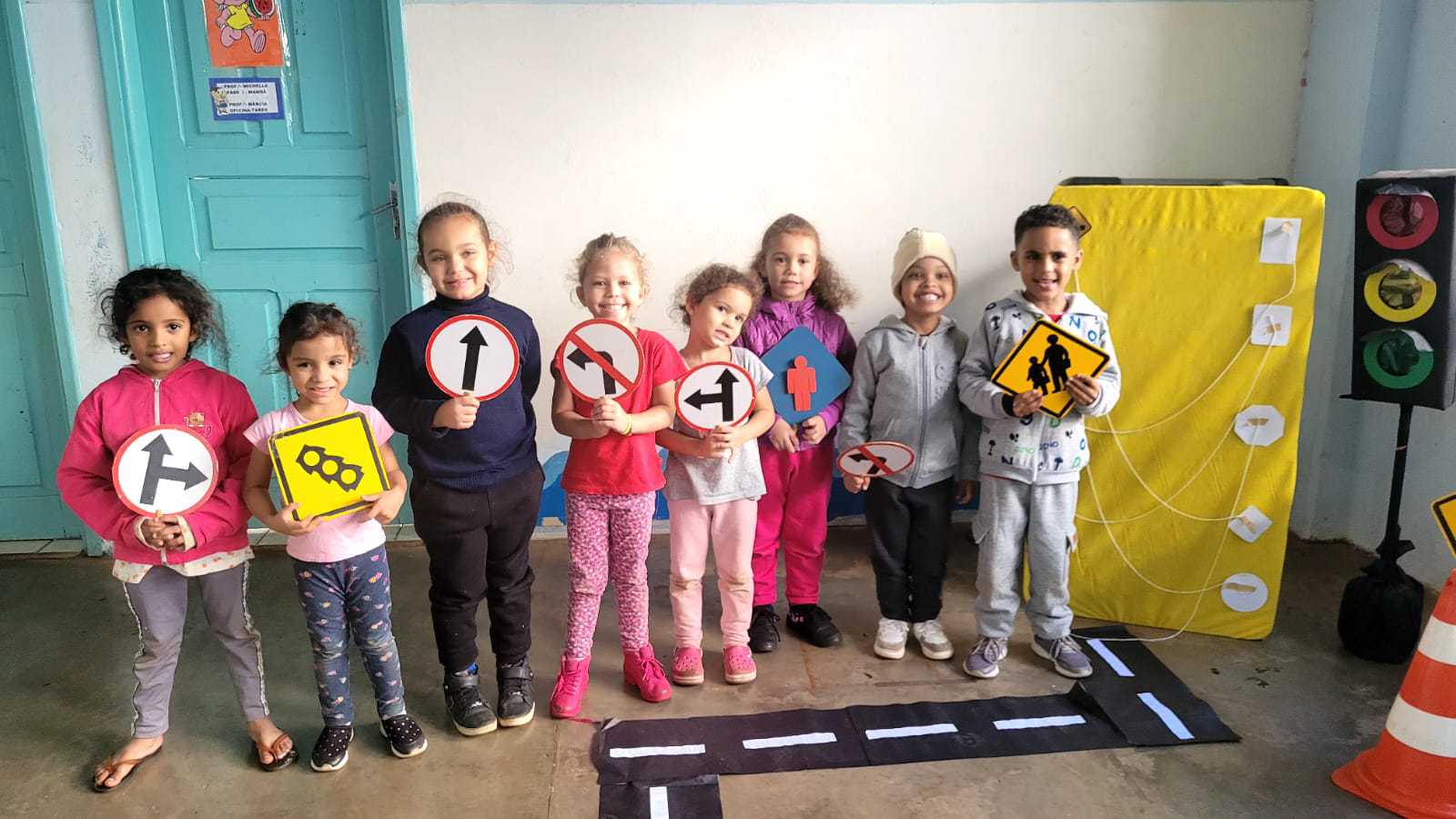 As crianças participaram de um circuito de trânsito onde aprenderam sobre atenção, respeito e segurança nas vias.🚦🚧🛑 Também aprenderam o significado de algumas placas e a importância de seguir as regras para um trânsito seguro🚦🚧🛑