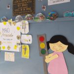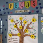 Para expor um pouco sobre a conscientização do trânsito, foi confeccionado um espaço para exposição dos trabalhos das crianças elaborado pelas turmas da escola. Para complementar esses trabalhos, a professora auxiliar elaborou uma árvore com as digitais dos alunos e funcionários da escola colocando flores na cor amarela para representar o MAIO AMARELO com uma frase que significa que somos uma família e que todos somos importantes. Além disso a professora proporcionou um momento de fala para que as crianças pudessem conversar entre si e expor ideias e modos de respeitar o trânsito.
