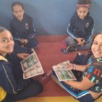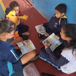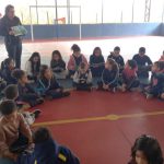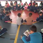 A turma do 5⁰ ano fez a leitura dos gibis da turma do Zé Quest sobre o meio ambiente, explicando-lhes e mostrando as imagens para eles. Após, fizemos uma roda de conversa para mais explicações sobre a preservação do meio ambiente, reciclagem de materiais, uso consciente da água, entre outros assuntos relacionados ao tema.