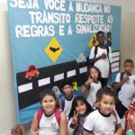 Durante o mês de Maio, onde comemora-se o mês do Maio Amarelo, para a conscientização no trânsito fizemos várias rodas de conversas referente ao respeito e regras do trânsito. Para reforçar os aprendizados, junto com os alunos confeccionamos um painel sobre a conscientização no trânsito, com os seguintes dizeres ” Seja você  a mudança no trânsito, respeite as regras e a sinalização!”.