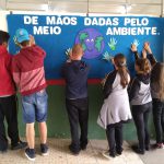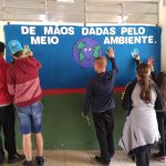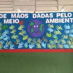 Juntamente com os alunos das turmas 6º01 e 9º01 a professora Fabiane, que ministra a disciplina de Arte, confeccionaram um painel referente ao Meio Ambiente. A professora trabalhou o Tema Preservação do Meio Ambiente antes de iniciar a confecção do painel.