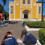 A aula teve como objetivo trabalhar a paisagem urbana na pratica, onde as crianças puderam observar a praça e a igreja matriz de Mandirituba, realizando o desenho da arquitetura urbana da cidade.