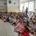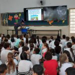No dia os alunos participaram tirando dúvidas, respondendo questionamentos, assistiram vídeos educativos e ouviram histórias e dicas de como se comportarem no trânsito.
