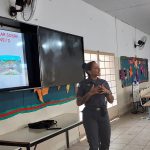 Os alunos tiveram a oportunidade de participarem de uma palestra ministrada pela policial Alcione, do nosso município, sobre o trânsito.