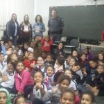 Em nossa escola há um policial militar que ministra aulas de PROERD para os alunos dos quintos anos. E, como todas as salas de aula realizam atividades de orientação no trânsito, os direitos e deveres no trânsito, faixas, semáforos, placas, etc, este policial veio fazer uma palestra para os alunos, reforçando, com isso, os temas abordados em sala de aula. Ele trouxe os temas em power point, vídeos e folheto explicativo. Iniciou sua fala dizendo sobre o trânsito, as regras e os sinais. Orientou também as crianças a usarem sempre o cinto de segurança, sentarem-se sempre no banco de trás e jamais colocarem a cabeça ou braços para fora da janela do carro, evitando assim acidentes. Mostrou ainda dois vídeos. O primeiro, mostrando uma criança não utilizando o cinto de segurança e a consequência que isto trouxe. E o segundo, justamente o contrário, a criança utilizando o cinto. Com o vídeo “Pateta no trânsito”, os alunos se divertiram e puderam ver claramente a diferença entre o motorista cauteloso e o motorista que se acha “o dono da rua”. Ao final da palestra foi entregue aos alunos um folheto explicativo direcionado aos motociclistas.