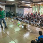 Os alunos participaram de uma palestra sobre reciclagem seletiva feita por profissionais do setor. Coma palestra os alunos aprenderam sobre a importância da reciclagem para o meio ambiente, aprenderam sobre quais materiais podem ser reciclados e um pouco sobre o processo de reciclagem.