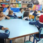 A coordenadora da escola deu uma palestra sobre o Maio Amarelo explicando o significado do tema, as crianças relataram muitos acontecimentos relacionados ao trânsito de momentos em que estão com seus responsáveis, falaram sobre as atitudes e comportamento de motoristas, pedestres e perceberam que eles podem ajudar a termos um trânsito mais consciente.