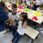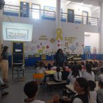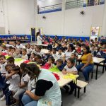As palestrantes prenderam a atenção das turmas utilizando a ludicidade, apresentando músicas e o mascote paradão.
