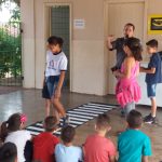 A interação das crianças com o policial é divertida e, em vários momentos são chamadas à participar de brincadeiras e encenações.