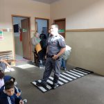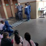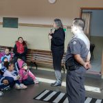 Ele orientou as crianças em relação às regras de trânsito, como atravessar a rua com segurança, atitudes corretas enquanto passageiros junto com os adultos e enquanto pedestres.