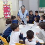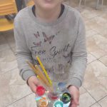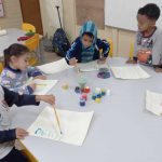 Confeccionamos paletas de pintura utilizando garrafas pet, tampinhas e CDs. Colocamos tinta e água, proporcionando às crianças a oportunidade de explorar diferentes formas de criar seus desenhos de maneira livre e criativa.