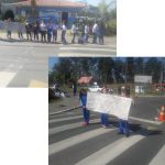 Após produzirmos panfletos em sala resolvemos no dia do pedestre realizar uma ação nas ruas. Levamos os panfletos feitos pelos alunos para distribuir e cartazes para sensibilizar os motoristas que passavam. A guarda municipal nos acompanhou ajudando a parar o trânsito para entrega dos panfletos e a conversa com os motoristas.