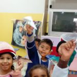 Texto: Contei a história do papel onde foi falado sobre a importância da reciclagem para o meio ambiente e utilizando vários papéis podemos construir diversas formas como: chapéu, tapete, barco, espada, avião, etc.
