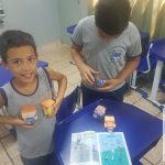 - Outro momento bastante divertido e descontraído foi quando os alunos puderam conhecer os personagens da revista/gibi da Turma do Zé Quest, na forma de bonequinhos de papel, os paper toys , e foi muito interessante perceber como eles são familiares aos alunos, e isso foi possível graças à leitura que fizeram dos gibis da Turma do Zé Quest