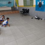 Ainda com as crianças sentadas na rodinha para a contação da história “o que aconteceu? A baratinha adoeceu...uma história que enfatiza a dengue, mostra os possíveis criadouros do mosquito, a forma de transmissão e as principais medida de prevenção. Contamos a história e na sequência, realizamos a interpretação oral através de algumas perguntas e informamos aos alunos que não podemos deixar latas, copos descartáveis, garrafas abertas, pneus, tampinhas, vasos de plantas com pratinhos debaixo, entre outros recipientes que podem se tornar criadouros do mosquito da dengue, porque é isso acontece quando o mosquito encontra água limpa e parada.