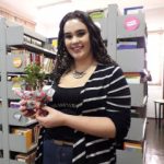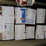Na mesa, caixas representando as cores para cada tipo de lixo, Bela estava se divertindo com os erros…rs