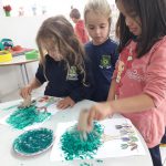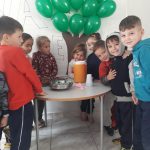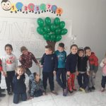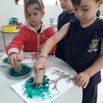 Na turma do Pré I, Educação Infantil, trabalhamos de forma lúdica, primeiro contamos a história da sementinha que virou árvore e depois com a utilização de tinta guache pintaram a figura da árvore. Para concluir a aula os alunos ao redor de uma árvore feito com balões, cantaram parabéns e confraternizaram com bolo e suco.