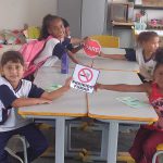 Então as crianças selecionaram as placas de PARE DE FUMAR e PARE. Exatamente para fazerem uma conscientização das pessoas de suas famílias que infelizmente fumam segundo eles ainda fumam.