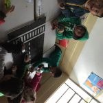 Na aula com a turma de Pré II, introduzi o tema sobre o dia do pedestre com a frase “Pare, olhe e pense: você também é pedestre”.