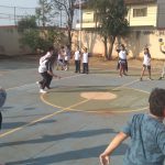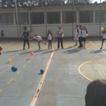 Usando a quadra de vôlei, um aluno de cada vez deverá tentar atravessar toda a extensão da quadra, com os outros alunos nas laterais da quadra podendo jogar bolas de plástico para acertar quem atravessar, ao ser atingido troca-se o aluno. Em alguns pontos da quadra terá algumas faixas de pedestres desenhadas no chão, onde será um ponto seguro para os alunos que irão atravessar (se uma bola o acertar na faixa, pode continuar o trajeto)…