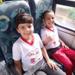 Dia de passear de ônibus, conhecer e praticar algumas regrinhas de segurança que devemos seguir para um trânsito mais seguro. Iniciamos nosso trabalho com a roda da conversa para citarmos as regras do passeio e o que iríamos observar durante , falamos sobre todos viajarem sentados e com cinto de segurança, isso da nossa parte como passageiros, quanto ao motorista ele respeitaria a velocidade permitida, às “ordens” do semáforo, a passagem elevada de pedestres, placas e fazer tudo corretamente para que nosso passeio fosse seguro. Durante o passeio as crianças puderam observar como devemos agir em diversas situações, como passageiros, motorista, pedestre…O motorista fez um passeio muito tranquilo, parando para travessia de pedestres, para observar o semáforo e as placas. As crianças adoraram a experiência e juntos puderam aprender coisas novas e que ainda não praticavam, como utilizar o cinto de segurança no ônibus, pois achavam desnecessário, foi uma experiência rica e gratificante, conhecimentos para compartilhar.