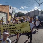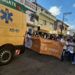 Os alunos fizeram uma passeata conscientizando sobre a importância do uso de cinto de segurança bem como, a necessidade do condutor de veículos pararem quando notar a presença de algum pedestre na Faixa de Pedestre.