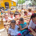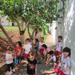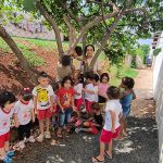 Na roda de conversa, convidamos as crianças a um passeio pelas ruas da cidade para conhecerem melhor o bairro onde fica localizada a escola, o que iriam encontrar durante o passeio, explicamos que iriamos observar as plantas, árvores, flores, pássaros e qualquer coisa da natureza. Pedi para observarem as árvores, suas folhas e cores, deixei-as tocar na casca e nas folhas (com cuidado para respeitar as plantas). Se apareceu alguma borboleta ou pássaro e o que eles acham desses seres vivos, expliquei que os animais são importantes para o meio ambiente. Sentimos o cheiro das plantas, estava chovendo no dia do nosso passeio, chamei-os atenção para sentirmos o cheiro da terra molhada, o que acharam do aroma. Aproveitei para alertar sobre a importância do cuidado em manter o espaço limpo, não jogar lixo no chão.