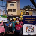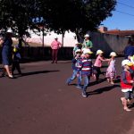 Fizemos uma caminhada ao redor da escola e aproveitamos para ensinar o modo correto de atravessar a rua respeitando as sinalizações indicadas e se existe acessibilidade para as pessoas que necessitam.