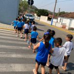 Nosso passeio envolveu uma caminhada pelos arredores da escola, onde as crianças puderam observar e identificar diferentes placas e sinais de trânsito.