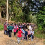Os alunos realizaram um passeio pelo entorno da escola para observar a paisagem e realizar um desenho para expor no Dia do Meio ambiente. A escola fica em uma região cercada por pequenos riachos e muita mata.