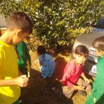 Na aula de hoje a professora Rayssa levou os alunos d0 2º ano B passear pelo interior da escola. Os alunos cataram no chão folhas secas de árvores para realizar uma atividade. Juntaram também os lixos que acharam..