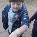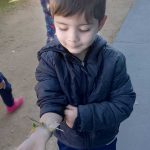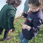 – Após nossa rotina, formar um círculo com as crianças explicar que hoje vamos nos tornar “exploradores da natureza” e criar pulseiras especiais usando elementos naturais. Conversar brevemente sobre o que podemos encontrar na natureza (ex: folhas, flores, pedrinhas). Perguntar ás crianças o que elas acham que podem encontrar lá fora para colocar em suas pulseiras, explicar que vamos sair para explorar e coletar elementos naturais, mas devemos respeitar a natureza, não arrancar plantas ou flores em excesso, e não pegar nada perigoso.