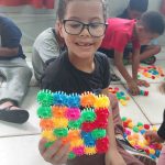 Durante a atividade, foi notável o entusiasmo e o envolvimento dos alunos. Cada criança contribuiu com suas ideias e mostrou muita empolgação ao ver suas criações ganhando forma. Além disso, foi possível observar o desenvolvimento da linguagem oral, pois os alunos explicavam uns aos outros o que estavam criando e combinavam estratégias para montar suas peças.