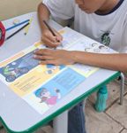 - Na sala de aula, leram a apostila com atividades sobre ciclismo e puderam aprender como respeitar as leis de trânsitos e prevenir acidentes.