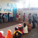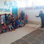 DESCRIÇÃO DA ATIVIDADE: Roda de conversa com as professoras sobre a faixa de pedestre. O porquê que devemos utiliza-la quando esta estiver devidamente desenhada na rua ou cruzamentos. Se já viram o botão do semáforo para os pedestres passarem, se sabem qual a cor que o pedestre pode passar quando este botão é acionado. Se não tiver o botão tem que esperar qual cor do semáforo para os veículos pararem para os pedestres atravessarem.