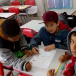 Partindo desta conversa as crianças produziram frases sobre como se comportar no trânsito, incluindo ciclistas, pedestres, motoristas e a função do guarda de trânsito.