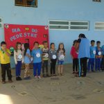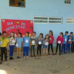 A professora Andrea do 1º ano C, apresentou a paródia Pedestre Mirim, na sessão cívica que houve na escola, trabalhou em sala de aula a importância de se respeitar o trânsito , tanto pedestre , quanto motorista.