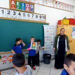 De início, realizamos uma roda de conversa a respeito do semáforo e sua função para os pedestres e veículos, alguns alunos deram exemplos de atitudes que já presenciaram e vivenciaram no trânsito, e compreenderam a importância de prestarem atenção nas cores do semáforo para realizarem uma travessia. Os alunos também assistiram um vídeo infantil educativo “Educação no trânsito não tem idade” da Turma da Monica. Por fim, alguns alunos demonstraram aos demais, uma simulação de travessia segura. Todos puderam compreender que para um trânsito mais humanizado devemos ser conscientes e respeitar as leis de trânsito.