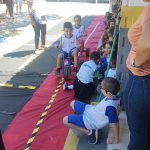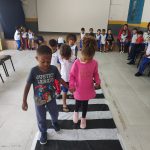 Após as adivinhas, os responsáveis foram estimulados a participarem junto com seus filhos do Circuito do Pedestre, Siga e Volte, onde realizaram diversas tarefas que objetivaram a segurança do pedestre no trânsito!