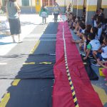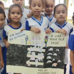 Como proposta artística, confeccionamos um cartaz coletivo, A vida passa pela faixa, e também a confecção de um folder para ser entregue à família, com algumas dicas para o pedestre circular com segurança no trânsito, realizamos também a brincadeira “ Atravessar a faixa de pedestre”, onde a professora confeccionou uma faixa de pedestres e colocou no chão do pátio da escola para as crianças atravessar obedecendo os comandos dados pela professora.