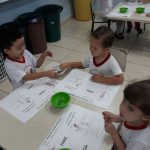 As professoras iniciaram a atividade com uma roda de conversa, onde abordaram o tema. Assistiram aos vídeos “Criança segura – Super Pedestre” e “Stress no trânsito – Super Pedestre”. Fizeram uma incursão pelo ambiente escolar, onde puderam observar as placas e a faixa de pedestres, localizada na frente da nossa escola. Para finalizar, as crianças fizeram uma atividade com pintura, reforçando as indicações do semáforo de pedestres: PARE e SIGA. Aprendizado e ludicidade caminhando juntos!