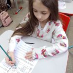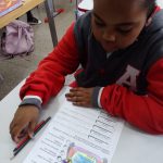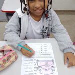 Após a conversa os alunos pintaram um desenho sobre a faixa de pedestres e as placas de trânsito.