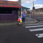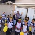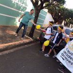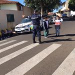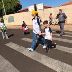 Dando continuidade nas ações do Maio Amarelo, foi realizado uma demonstração de travessia na faixa de pedestre em frente à escola com o objetivo de adotar medidas que tornem o trânsito mais seguro para pedestres, ciclistas, motociclistas e condutores de veículos. Posicionados próximos à faixa de pedestre, o PM Cabo Rodrigo Bueno, a diretora Eunice Cecato e os alunos reforçaram o alerta “Pedestre use a faixa!” e demonstraram a travessia de forma segura, conscientizando assim motoristas e pedestres sobre a importância do respeito a faixa para um trânsito com menos registros de atropelamentos.