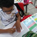 Descrição: Após a leitura da revista do Zé Quest e de uma pequena socialização…cada criança desenhou e pintou de acordo com as cores da coleta seletiva…os coletores.