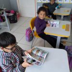 Os alunos do primeiro ano se divertiram das historinhas em quadrinhos da revista do Zé Quest. Neste dia foi trabalhado a importância do pensar e repensar do lixo em que acumulamos no nosso dia a dia. Com a leitura realizada pela professora, os alunos puderam aprender um pouco mais do que é ser um cidadão consciente. O livro didático de ciências também fez parte desse momento com o tema: CUIDANDO DA LIMPEZA DO AMBIENTE da Turma da Mônica.