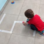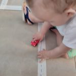 Confeccionei simbolicamente uma estrada no chão da sala com alguns sinais, tipo a faixa de pedestres para que as crianças fizessem o percurso com carrinhos.